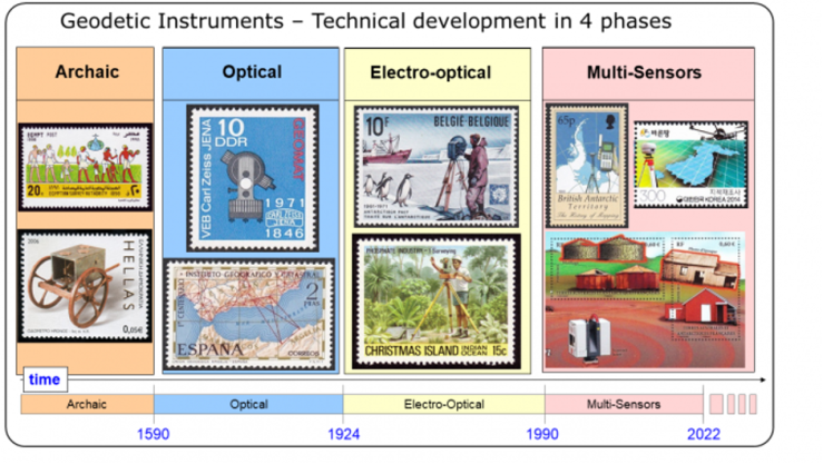 İlk iki sanayi devriminin (Şekil 2) jeodezik aletlerin teknik ilerlemesi üzerinde önemli bir etkisi olmamıştır. Bununla birlikte, üçüncü sanayi devrimi, sadece ölçme cihazlarının kendilerinde değil, aynı zamanda elektronik mesafe ölçerlerin (EDM), ölçümlerin dijital olarak depolanması ve dijital hesap makinelerinin gelmesi nedeniyle haritacıların tüm çalışma yaklaşımında da önemli değişikliklere neden oldu.  Sonraki yıllarda, uygulama yazılımlarının gelişmesi çok önem kazandı ve haritacıların iş profilini tamamen değiştirdi.