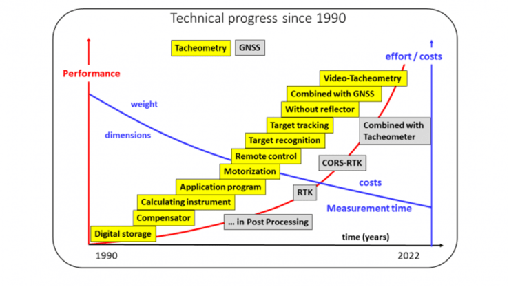 Şekil 3: Total Station ve GNSS alıcılarının son 30 yıldaki teknik gelişimi.
